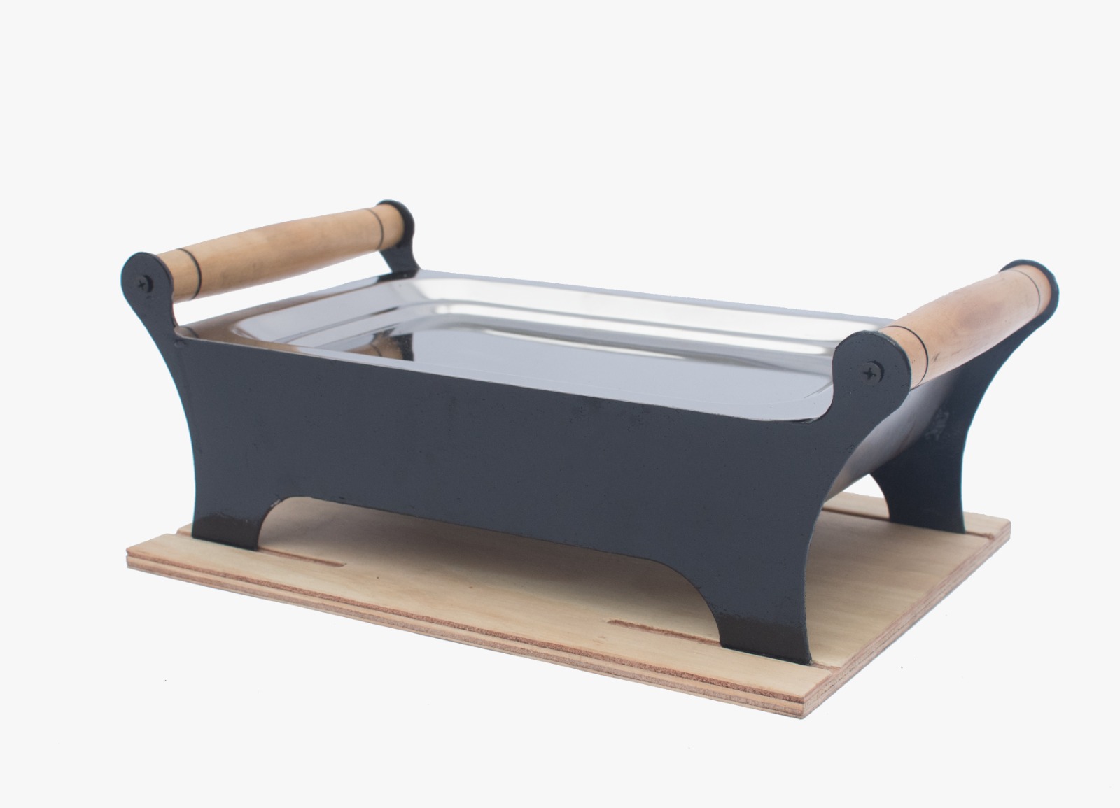 Base de madera en placa maciza con canaletas para evitar el desplazamiento del brasero fenólico de 8 mm